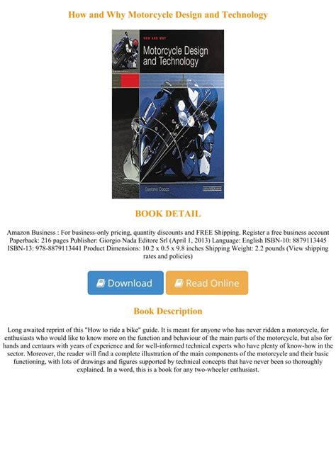 Download How and Why Motorcycle Design and Technology Kindle Editon online is a convenient and frugal way to read How and Why Motorcycle Design and Technology you love right from the comfort of your own home. Yes, there sites where you can get Kindle Editon "for free" but the ones listed below are clean from viruses and completely legal to use.